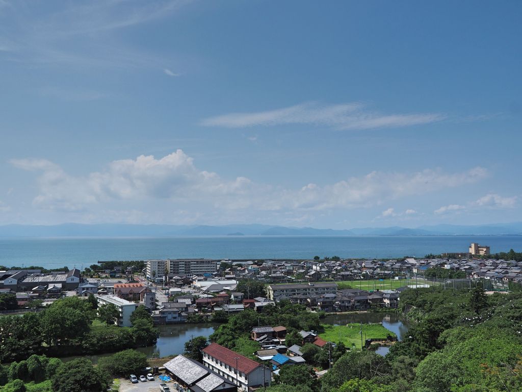 Near the end of our trip, we made a brief journey (1 hour by local train from Kyoto) to see Hikone Castle, located in the similarly-named town on the eastern side of Lake Biwa. We were again greeted with great weather: sunny, +30 degree heat and high humidity. It was therefore not surprising to see almost nobody in the area between Hikone Station and the castle: after all, who would be stupid enough to go out in the middle of the day in that heat?